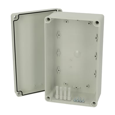 Base with screws for mounting plate/DIN-rail. cover with PUR gasket and polyamide cover screws.