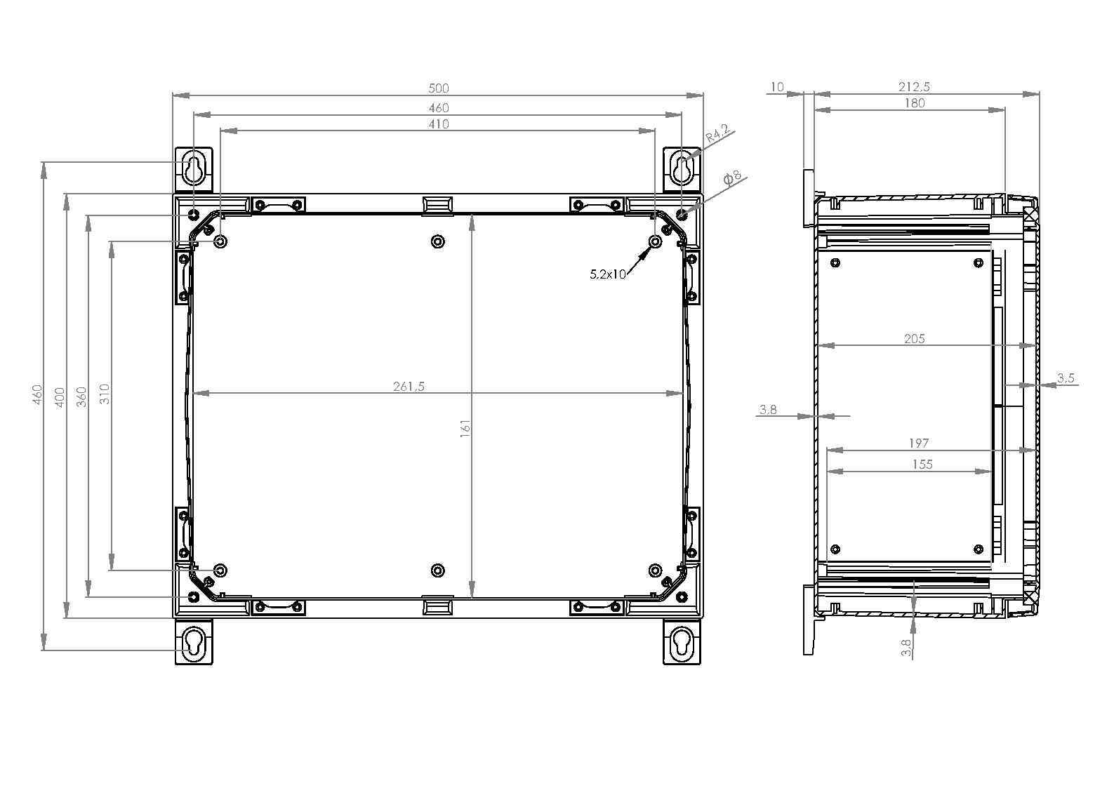 | IDS ARCA 4050 | Galvaniserade stålkarmar, dörr av aluminium, för storlek 400x500x210 |